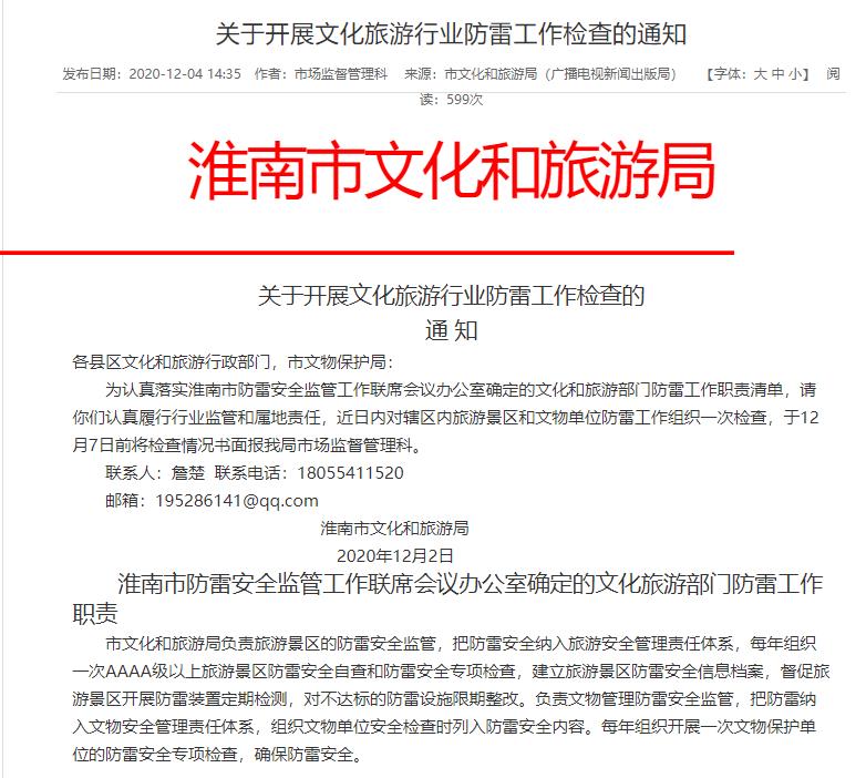 淮南市防雷安全監(jiān)管工作聯(lián)席會議辦公室確定的文化旅游部門防雷工作職責(zé)